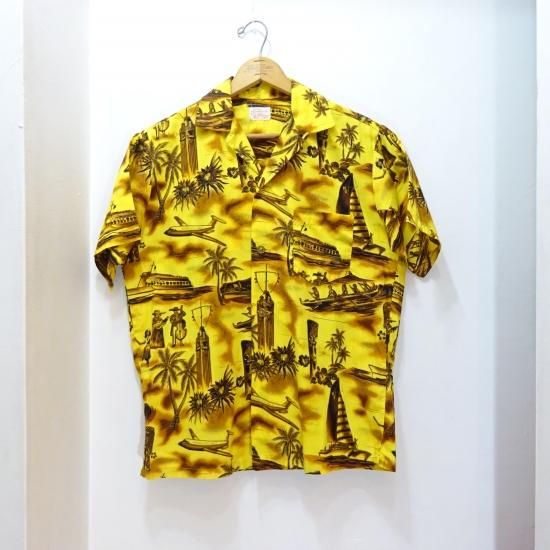 50's Fashions of Hawaii Cotton Hawaiian Shirts Yellow size M