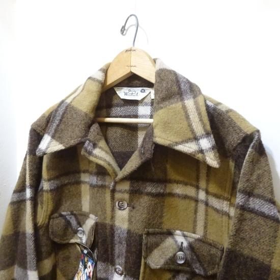 Dead Stock 70's Woolrich Brown Check Wool Jacket size M Made in U.S.A